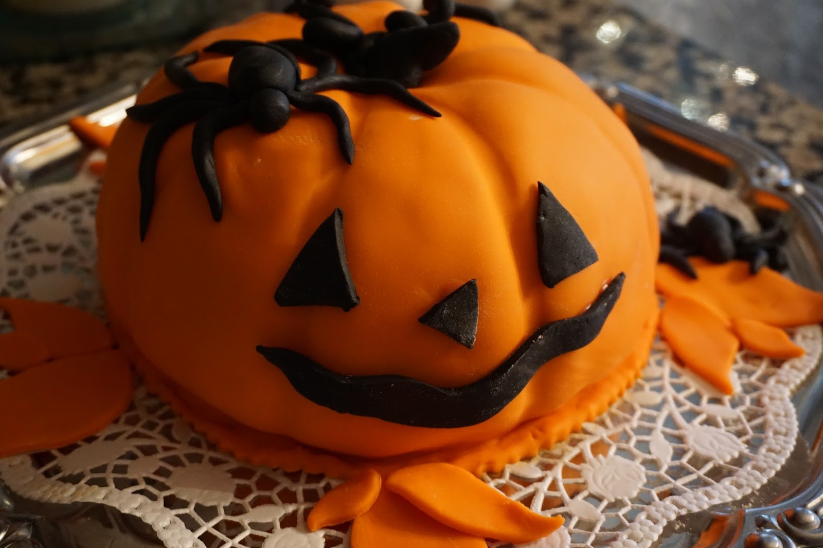 Leivoin kurpitsakakun hämähäkkeineen. Täytteenä kakussa oli Kinuskikissan blogista napattu lakkatäyte vaniljakiisselillä.